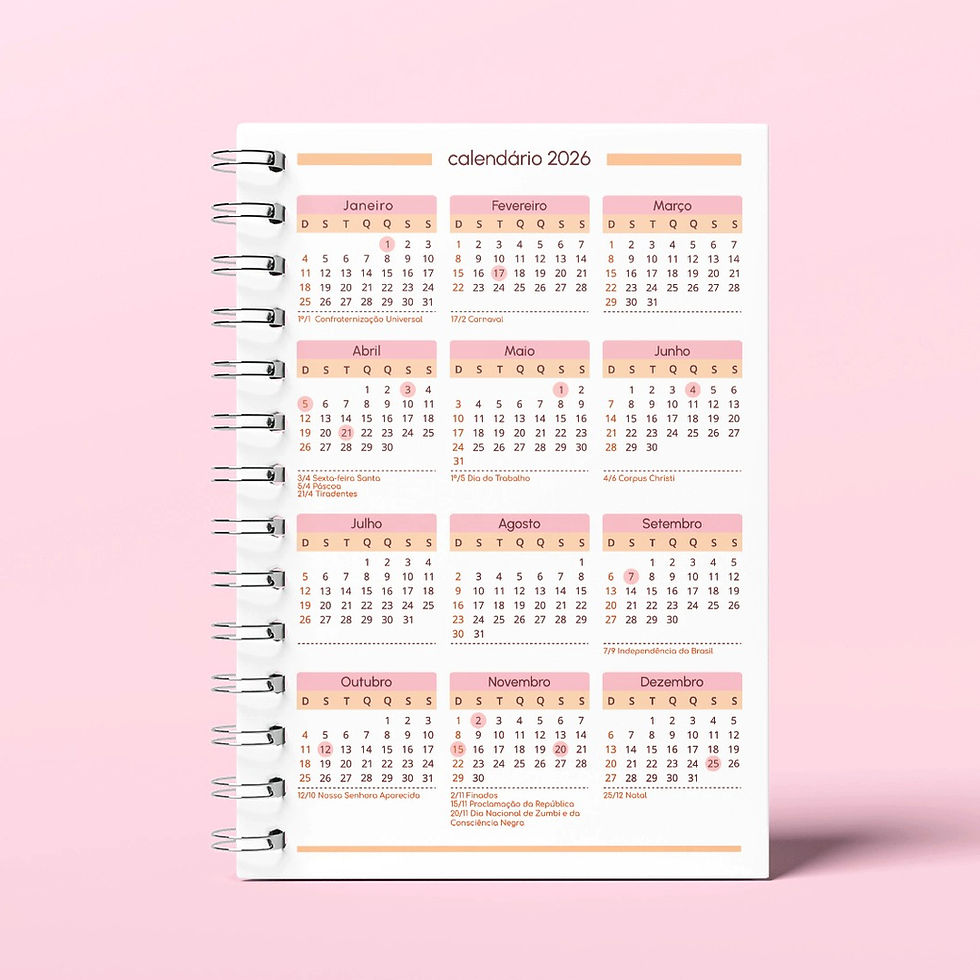 Calendário A5 - 2026 (frente) e 2027 (verso) - 12 tons - wire-o/espiral